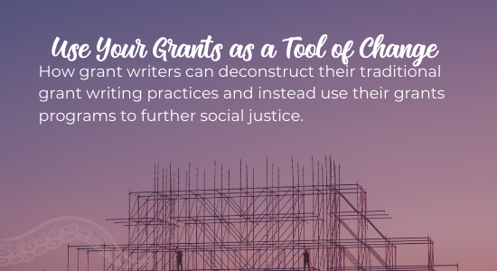 I’ve been writing grants for a long time. I’ve been fundraising even longer. And some days it feels like I have one foot in the vital work of the Community-Centric Fundraising movement, and one foot stuck in the mud of grant deadlines. But, grant writers play a critical role in branding an organization, and crafting the ways in which it’s presented to funders. And so grant writers play a critical role in integrating social justice into fundraising programs —and the overall culture and work of our organizations.